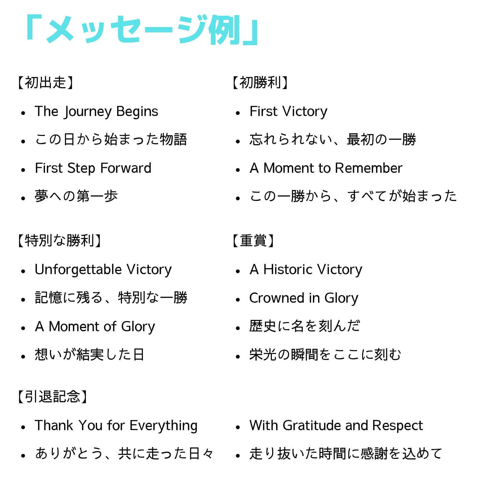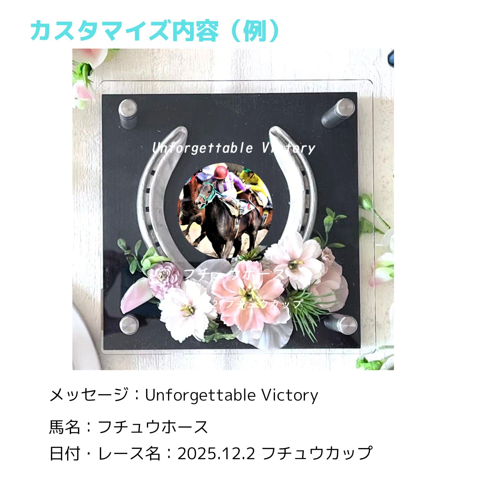 ●馬名・日付・レース名・馬主名・メッセージ・騎手名などお好みで刻印させていただきます。